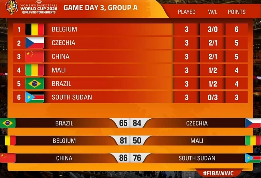 中国女篮与捷克女篮前三场世预赛均是2胜1负,中国女篮暂列小组第三,而捷克女篮小组第二。实力强大的比利时女篮目前3胜0负小组第一,她们大概率会以全胜战绩锁定小组第一,因而中国女篮与捷克女篮的对决会是争夺小组第二的关键比赛。